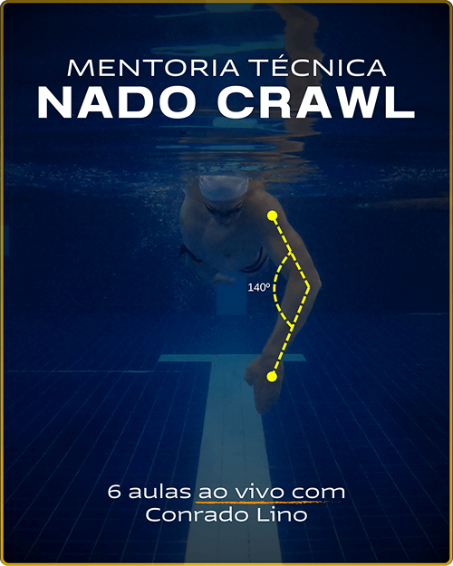 Tenha acesso à 6 aulas ao vivo com Conrado Lino para aprender a técnica do Nado Crawl.
